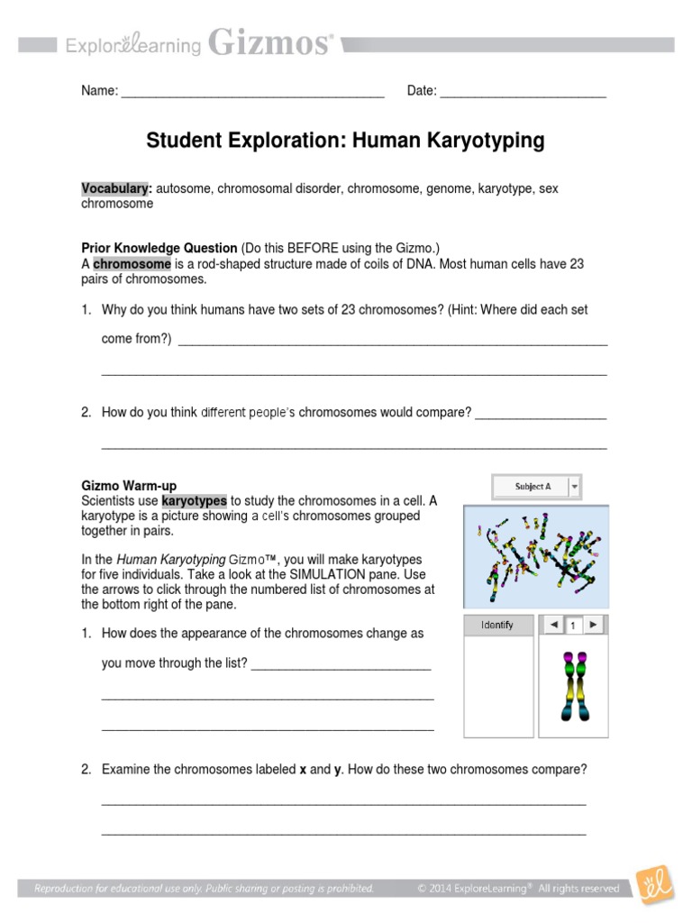 Each lesson includes a student exploration sheet, an exploration sheet answer key, a teacher guide, a vocabulary sheet and assessment questions. Human karyotyping gizmo answers scrap book as the out of the download: If you ally habit such a referred explore learning human karyotyping gizmo answer key books that will have the funds for you worth, acquire the certainly best seller you may not be perplexed to enjoy every ebook collections explore learning human karyotyping gizmo answer key that we will totally offer. A karyotype is a picture showing a cell's chromosomes grouped together in pairs. Scientists use karyotypes to study the chromosomes in a cell.